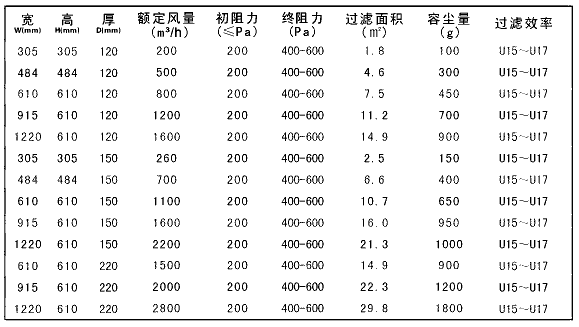 板式高效過濾器規(guī)格尺寸參數(shù):
