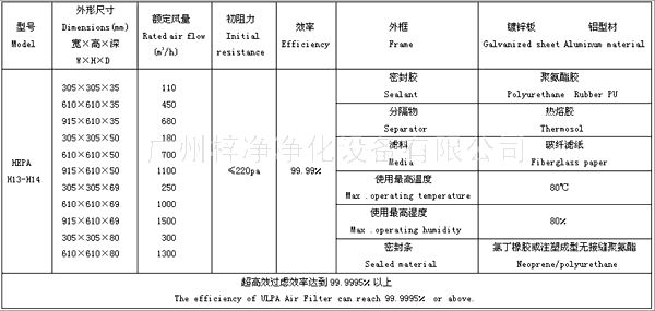 高效過濾器規(guī)格尺寸技術(shù)參數(shù)
