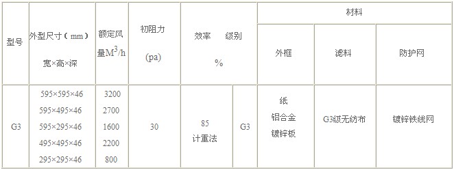 G3級初效過濾器可分為板式初效過濾器和袋式初效過濾器。G3級初效過濾器主要適用于空調與通風系統(tǒng)預過濾、潔凈室回風過濾、局部高效過濾裝置的預過濾。