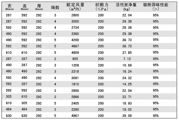 活性炭高效過濾器規(guī)格尺寸參數(shù):