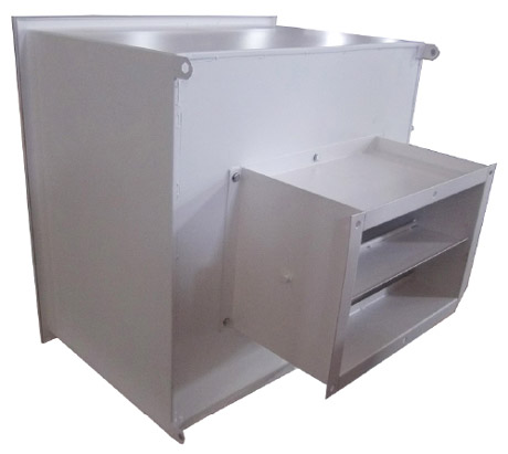 A、高效送風(fēng)口靜壓箱體,材質(zhì)有冷軋鋼板(A3板)與不銹鋼板。箱體是用作吊在天花上與四周庫板相結(jié)合密封,也是高效送風(fēng)口四件套主體。