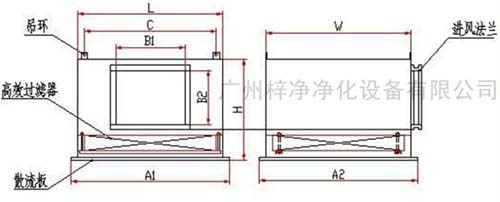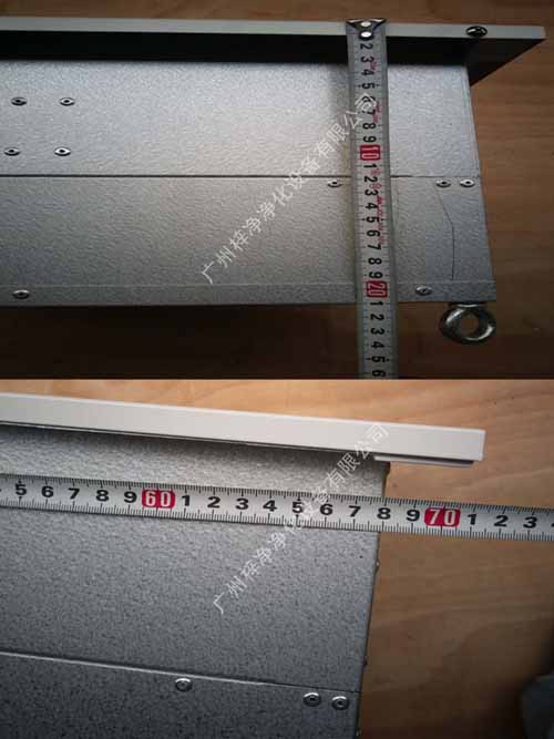 A、高效送風(fēng)口靜壓箱體,材質(zhì)有冷軋鋼板(A3板)與不銹鋼板。箱體是用作吊在天花上與四周庫板相結(jié)合密封,也是高效送風(fēng)口四件套主體。
