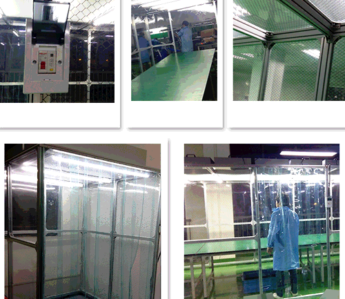 2、潔凈棚是防靜電垂簾:四周圍用防靜電垂簾(或鋼化玻璃),防靜電效果好、透明度高、網(wǎng)格清晰、柔韌度好、不變形、不易老化;