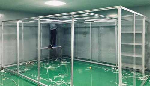 百級(jí)潔凈棚采用工業(yè)鋁材(或不銹鋼方通、鐵方通噴塑)作為框架,風(fēng)機(jī)濾網(wǎng)機(jī)組(FFU)送風(fēng),四周懸掛防靜電垂簾(或鋼化玻璃),其內(nèi)部凈化級(jí)別可達(dá)到100-10000級(jí)。適用于操作區(qū)內(nèi)局部凈化級(jí)別要求高的區(qū)域。