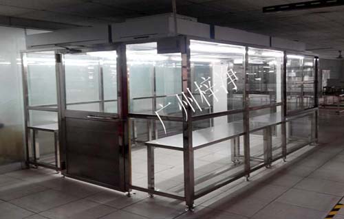 潔凈棚采用工業(yè)鋁材(或不銹鋼方通、鐵方通噴塑)作為框架,風(fēng)機濾網(wǎng)機組(FFU)送風(fēng),四周懸掛防靜電垂簾(或鋼化玻璃),其內(nèi)部凈化級別可達到100-10000級。適用于操作區(qū)內(nèi)局部凈化級別要求高的區(qū)域。三十萬級潔凈棚又叫凈化棚或者潔凈工作棚(簡易無塵室)