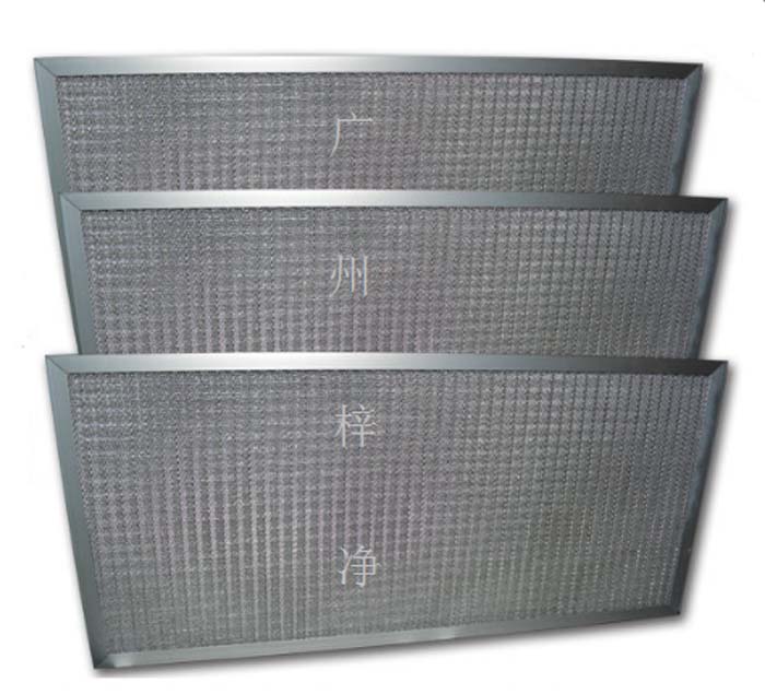 2、多層折疊擴(kuò)張鋁箔或不銹鋼網(wǎng)是以不同的密度,孔徑由粗到細(xì)的排列,使空氣通過濾網(wǎng)時多次改變流動方向,增大其集塵能力及效率。
