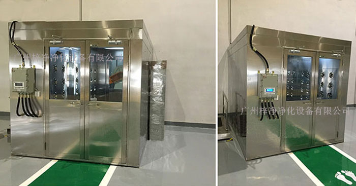 防爆風(fēng)淋室是人/貨進(jìn)入潔凈室所必需的通道,為了減少由于人/貨進(jìn)出帶來(lái)的大量塵埃粒子,在潔凈室的入口處安裝功能齊全的“氣閘室”可以減少空氣污染微粒的數(shù)量,當(dāng)人/貨通過(guò)風(fēng)淋室時(shí),污染微粒被經(jīng)過(guò)高效過(guò)濾的高度潔凈空氣射掉,25m/s以上的高風(fēng)速確保了有效的噴射和飄移微粒經(jīng)過(guò)初效過(guò)濾器和高效過(guò)濾器兩級(jí)過(guò)濾基本過(guò)濾掉。