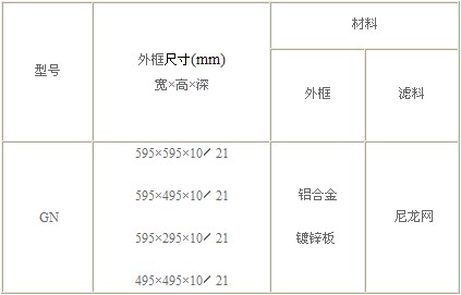 GN尼龍網初效過濾器技術參數(shù):