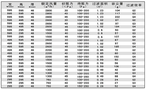 外框材質(zhì);鋁型材/鋁板折框/鍍鋅框/不銹鋼框/紙框、濾料材質(zhì)、合成纖維、護(hù)網(wǎng)材質(zhì)、鍍鋅電焊網(wǎng)/鋁網(wǎng)/不銹鋼網(wǎng)過(guò)濾效率 G1:40%@2.0μm,G2:65%@2.0μm, G3:85%@2.0μm, G4:90%@2.0μm使用最高溫度80℃,使用最高濕度100%。